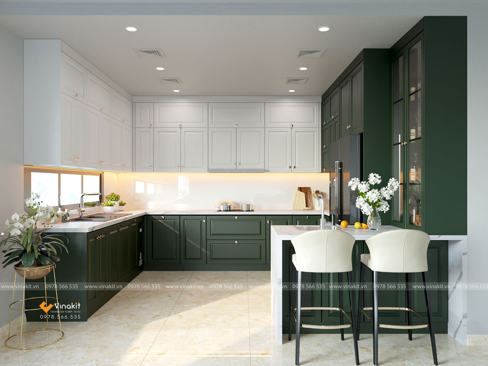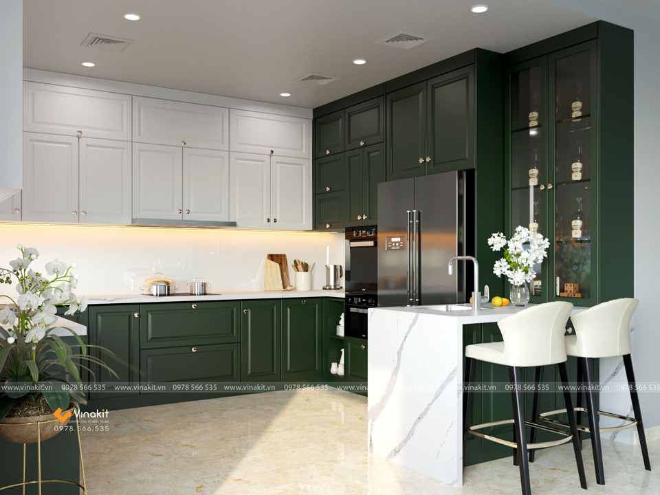 Gam màu có thể tùy chỉnh linh hoạt theo sở thích, từ những tone sáng thanh lịch đến màu trầm ấm sang trọng, giúp không gian bếp luôn hài hòa với tổng thể ngôi nhà.
