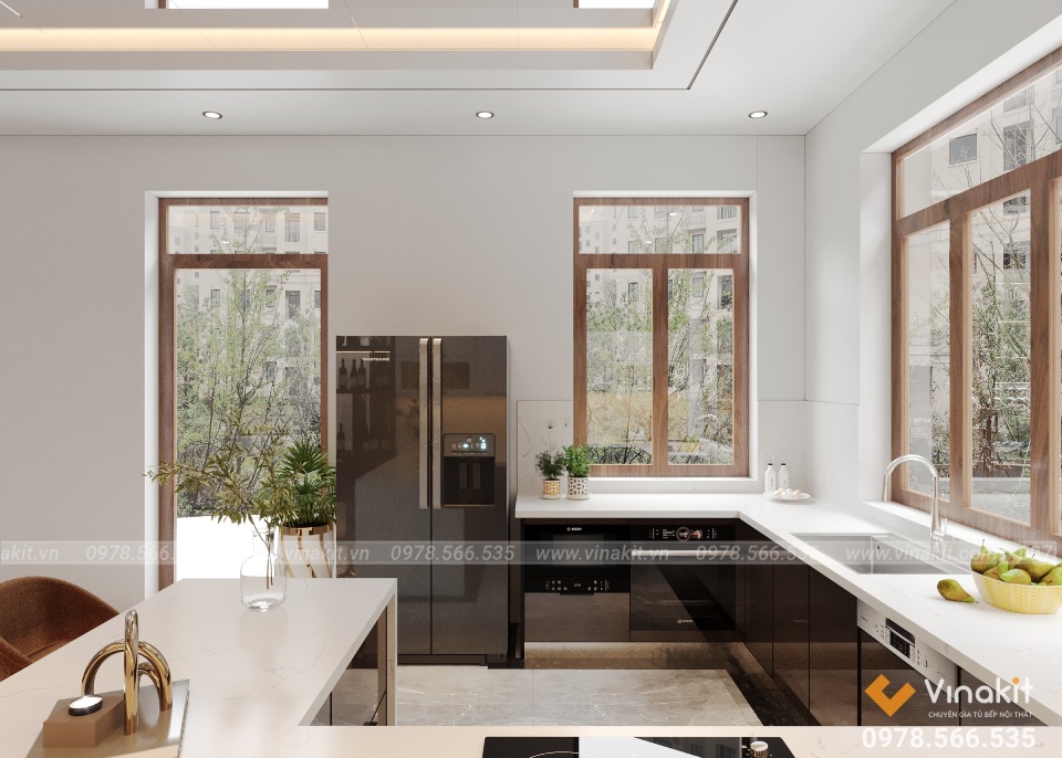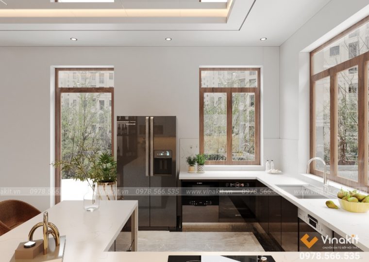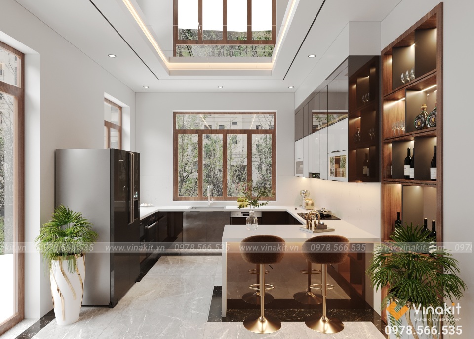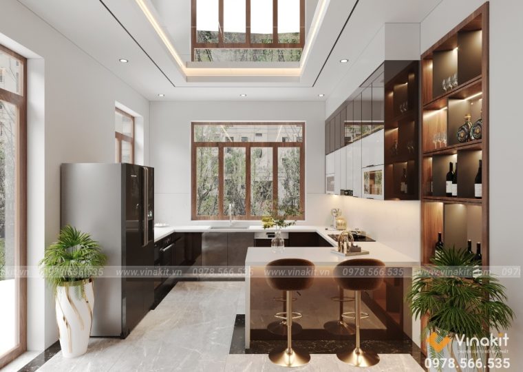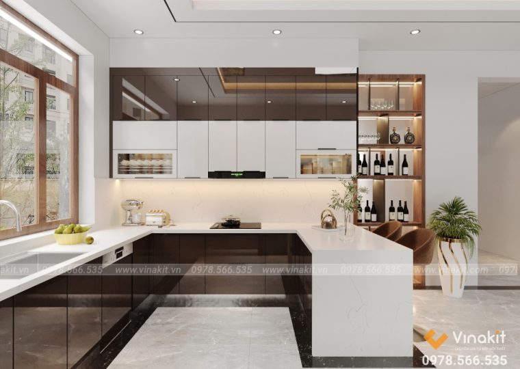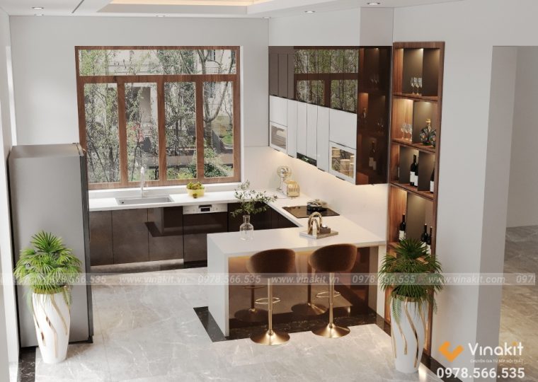 Kiểu dáng: Hệ tủ chữ U kết hợp bàn đảo, tối ưu công năng và diện tích sử dụng.
